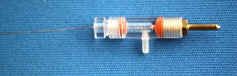 Elektrodenhalter, Typ E, Ag/AgCl-Draht, mit Druckanschluß, für Pipetten mit Außendurchmesser 2,0 mm, Anschluß: 2 mm-Bananenstecker, gerade Form