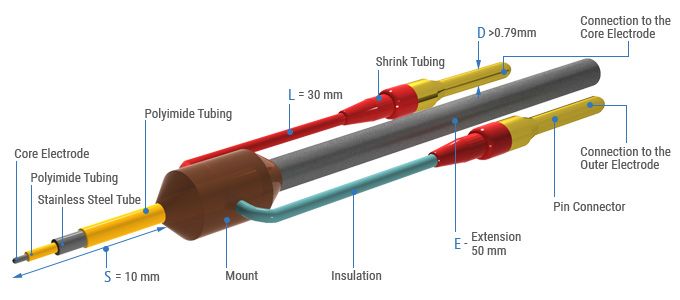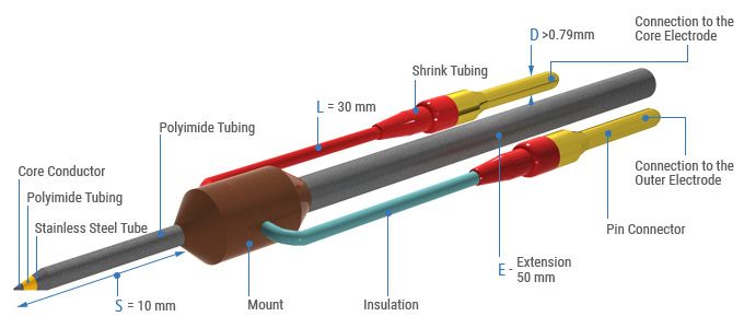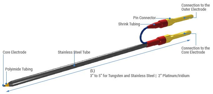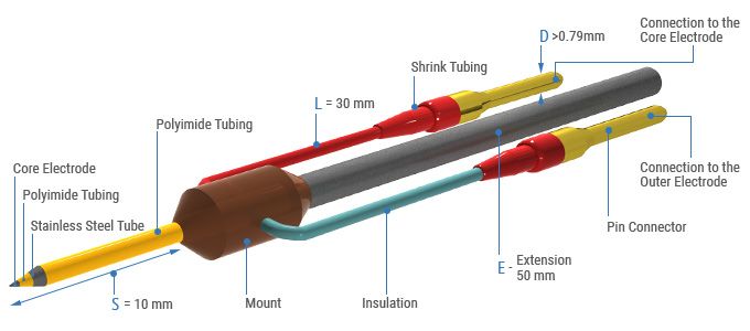Konische Mikroelektroden, konzentrisch, mit entfernbarer Halterung (MicroProbes)