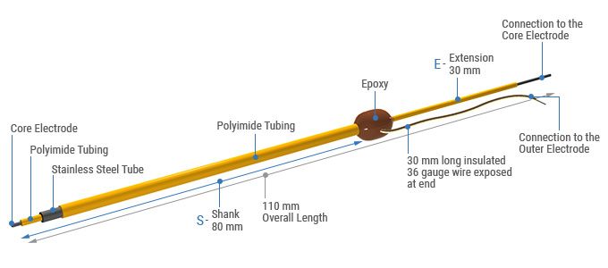 Konische Mikroelektroden, konzentrisch, mit Edelstahl-Ummantelung, Halterung entfernbar (MicroProbes)