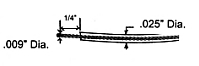 Wire cross selection  0.127 mm  x  0.0635 mm (.005 " × .0025 "). Insulated tip maximum outside diameter  0.229 mm (.009 "). Length 91.5 cm (36 ") supplied on a protective spool as shown.  Time constant .004 s.  Maximum temperature 70 °C.  Sterilization by Gas (ETO).