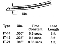 IT-IE - As IT-18 but sensor bead exposed. Combines the ultra-fast response of IT-23 with the Teflon™ sheath strength of IT-18. Time constant .005 s. Isolated.