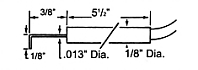 Max. diameter at tip 0.011 ".  Tissue implantable with 23 ga. needle (supplied).  Rather fragile. Max. Temp. 150 °C. Time constant 0.005 s. 3 ft. lead.  Teflon™ coated.  Isolated.