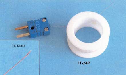 IT-24P - Tiny, 24 gauge polyurethane coated wire with polyester insulated thermocouple bead. For research applications to measure temperature in animal brains and other tissue.  Fairly fragile, but very fast responding.