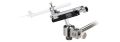 This one-axis coarse manipulator plays an auxiliary role for stereotaxic instruments.  Despite its compact, lightweight design, it has a long 40 mm driving range and is mounted on a ball joint so that angles can be set freely.  The BE-8 is attached on a ø 10 mm bar and is suitable for installation with many different types of stands.